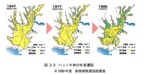 地下水位が下がったことで釧路湿原は乾燥化が進行してしまいました。本来の湿原植生であるヨシ・スゲ湿原が減少する一方、乾燥に強いハンノキ林が拡大。また魚類や水生昆虫の生息環境が劣化するなど、生態系に大きな影響が現れました。